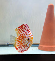 All of our Discus are bred and raised in Tap Water. Our PH is 7.4 and Temperature is between 84-86. Keeping your parameters consistent is key, dont chase the PH. We feed them Discusfood pellets, flakes, brine shrimp, bloodworms and our Homemade Beefheart Mix! We recommend keeping them in Groups of 4-6. We throughly quarantine all new arrivals for atleast 3 weeks. Click here to see the variety of foods we feed in house