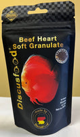 In addition to our Best Heart Flakes we at Discusfood offer you with the „Beefheart Granulate“ an additional possibility to do without the not undisputed frozen food and still be able to benefit from the advantages of beef proteins. From the point of view of naturalness, discus fish do not eat cows. However, the focus here is of course on providing his protégés with a protein source that is easy to utilize, so as not to subject them to the pressure of natural selection, but to provide the animals with the best possible care on the part of the feed.