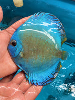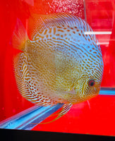 The Blue Scorpion Discus Fish is a stunning addition to any aquarium. With its beautiful blue color and unique spotted or solid pattern, this fish is sure to catch your eye. Its solid body and graceful movement make it a true beauty to behold. Add this expertly bred fish to your collection for a stunning and educational experience.Blue Scorpion Discus will have spots throughout the body, some have spots on the outter body. 14 Bar Snakeskin