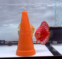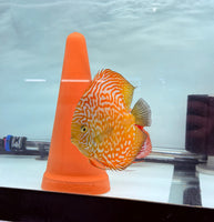 All of our Discus are bred and raised in Tap Water. Our PH is 7.4 and Temperature is between 84-86. Keeping your parameters consistent is key, dont chase the PH. We feed them Discusfood pellets, flakes, brine shrimp, bloodworms and our Homemade Beefheart Mix! We throughly quarantine all new arrivals for atleast 3 weeks. Click here to see the variety of foods we feed in house