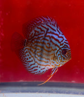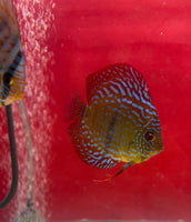 All of our Discus are bred and raised in Tap Water. Our PH is 7.4 and Temperature is between 84-86. Keeping your parameters consistent is key, dont chase the PH. We feed them Discusfood pellets, flakes, brine shrimp, bloodworms and our Homemade Beefheart Mix! We throughly quarantine all new arrivals for atleast 3 weeks. Click here to see the variety of foods we feed in house