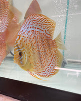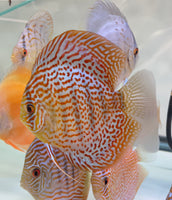 All of our Discus are bred and raised in Tap Water. Our PH is 7.4 and Temperature is between 84-86. Keeping your parameters consistent is key, dont chase the PH. We feed them pellets, flakes, brine shrimp, bloodworms and our Homemade Beefheart Mix! We recommend keeping them in Groups of 4-6. We throughly quarantine all new arrivals for atleast 3 weeks.