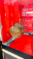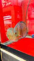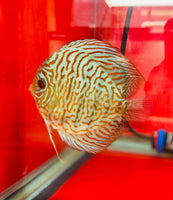 All of our Discus are bred and raised in Tap Water. Our PH is 7.4 and Temperature is 84. Keeping your parameters consistent is key, dont chase the PH. We feed them Discusfood pellets, flakes, brine shrimp, bloodworms and our Homemade Beefheart Mix! We throughly quarantine all new arrivals for atleast 3 weeks. Click here to see the variety of foods we feed in house