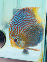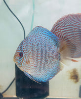 All of our Discus are bred and raised in Tap Water. Our PH is 7.4 and Temperature is 84. Keeping your parameters consistent is key, dont chase the PH. We feed them Discusfood pellets, flakes, brine shrimp, bloodworms and our Homemade Beefheart Mix! We throughly quarantine all new arrivals for atleast 3 weeks. Click here to see the variety of foods we feed in house