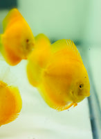 Experience the captivating beauty of our Golden Lollipop Discus! With stunning golden colors and a unique disc shape, this fish will add a touch of elegance to any aquarium. Watch as it gracefully glides through the water, adding a sense of tranquility to your space. Perfect for fish enthusiasts and beginners alike. Bred by no other than World Famous Martin NG!