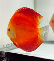 Exquisite Red Golden Diamond Discus. These will have a  Deep Red body and sometimes Blue rim.