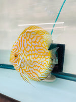 Beautiful tight honeycomb patterns on these Yellow/Golden Jaguar Discus. A YCID Exclusive. Limited Quantities Available.